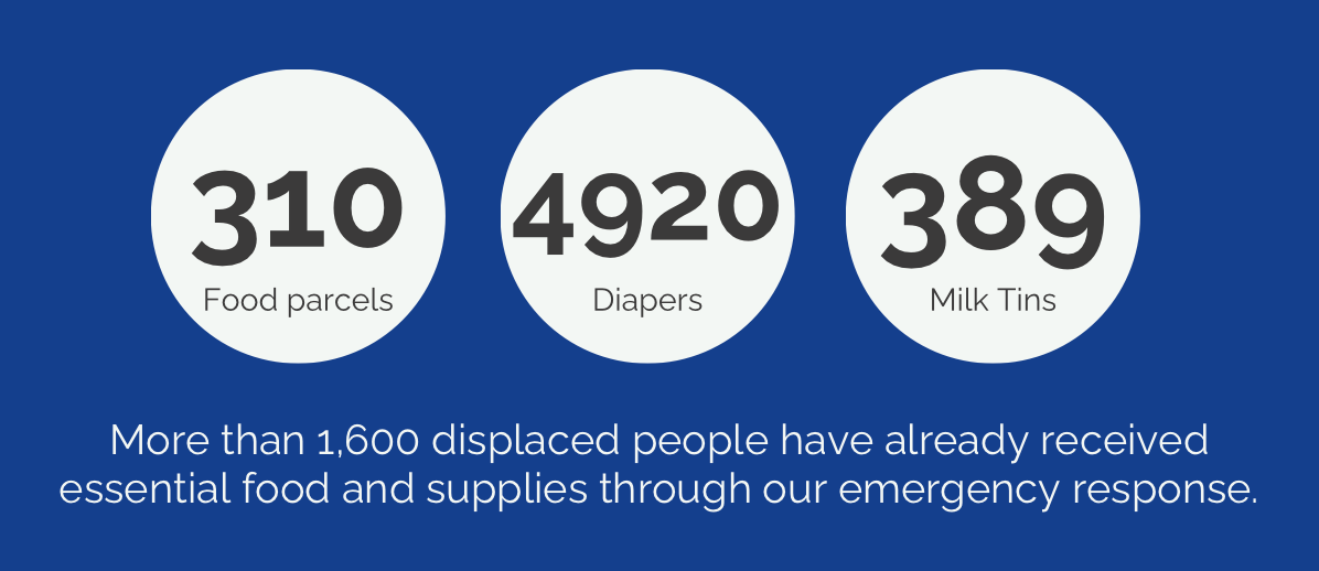Basic baby essentials, including nappies and other daily necessities, are also being delivered to support families who have been forced to leave everything behind. These vital supplies provide not only relief, but also a sense of stability during extremely difficult circumstances.
